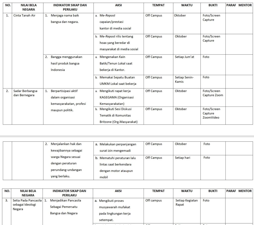 Isi video sebenarnya sudah sangat jelas, yaitu berupa kegiatan bela negara yang dilakukan oleh peserta di kehidupan sehari-hari baik di lingkungan rumah maupun kantor. Dalam tugas terpisah, kami sudah diminta mengumpulkan Rencana Aktualisasi Bela Negara yang berisi kegiatan apa saja yang akan dilakukan berikut dengan waktu maupun lokasinya.